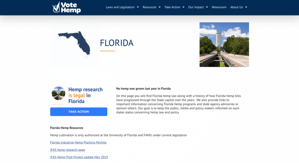 On this page you will find Florida hemp law along with a history of how Florida hemp bills have progressed through the State capitol over the years. We also provide links to important information concerning Florida hemp programs and state agency advisories or opinion letters. Our goal is to keep the public, media and policy makers informed on each states status concerning hemp law and policy.